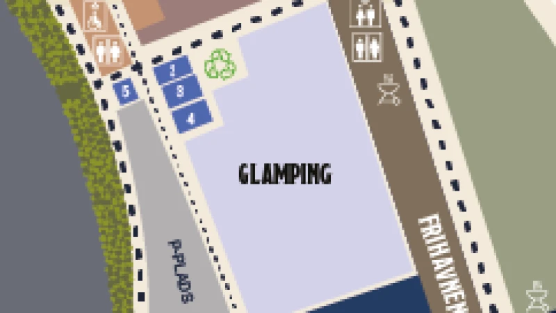 Se kort over campingområdet herunder*. Klik på kortet for at åbne i fuld størrelse.