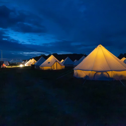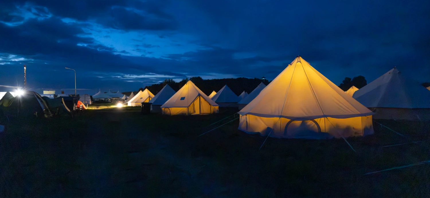 Glamping ligger centralt på campingområdet, tæt på Campinghøkeren og Campingscenen, så du får liv, musik og festivalstemning lige udenfor teltet – men stadig med en base, hvor du kan trække dig tilbage.