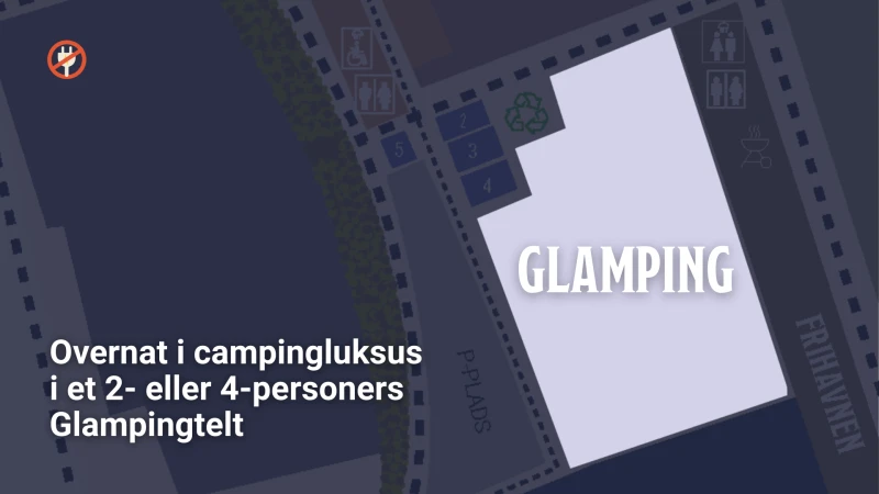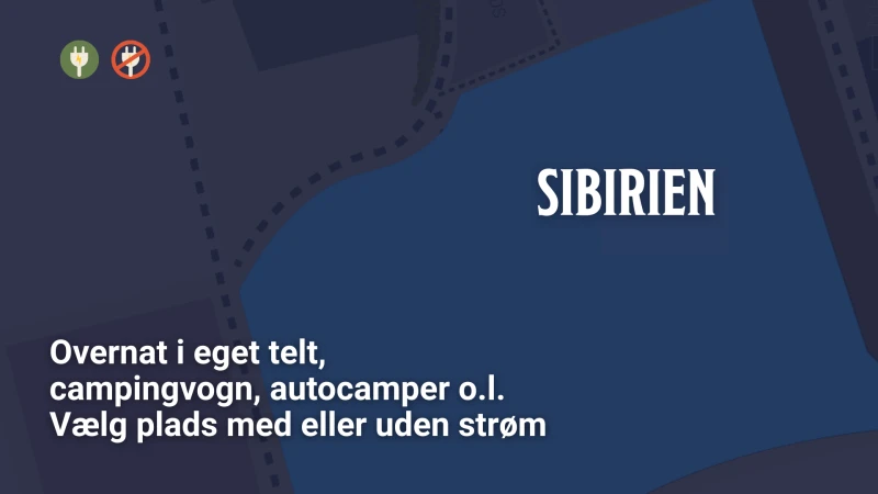 Se kort over campingområdet herunder*. Klik på kortet for at åbne i fuld størrelse.